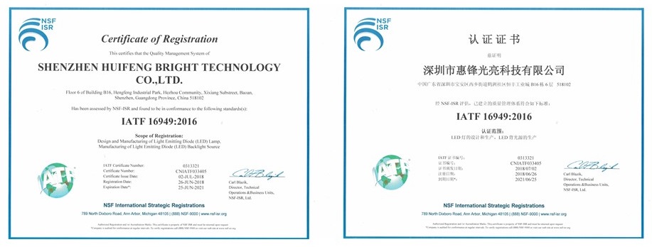 經(jīng)過公司的全員努力、全員參與,秉承“學(xué)習(xí)汽車文化和執(zhí)行IATF體系要求,質(zhì)量為先”的管理理念,經(jīng)過三天的全過程審核,深圳市惠鋒光亮科技有限公司在“ISO/TS 16949:2009”的基礎(chǔ)上,順利通過了“IATF 16949:2016”體系升級(jí)認(rèn)證,現(xiàn)場(chǎng)審核專家對(duì)惠鋒光亮“LED&背光源的開發(fā)設(shè)計(jì)及生產(chǎn)過程能力”給予了高度的肯定,此次體系的升級(jí)認(rèn)證和學(xué)習(xí),也標(biāo)志著惠鋒光亮科技的體系保證能力更加日趨成熟,惠鋒光亮科技也將一如既往保持“高品質(zhì)、嚴(yán)標(biāo)準(zhǔn)、優(yōu)服務(wù)”的經(jīng)營(yíng)觀為客戶提供最好的產(chǎn)品和服務(wù)。